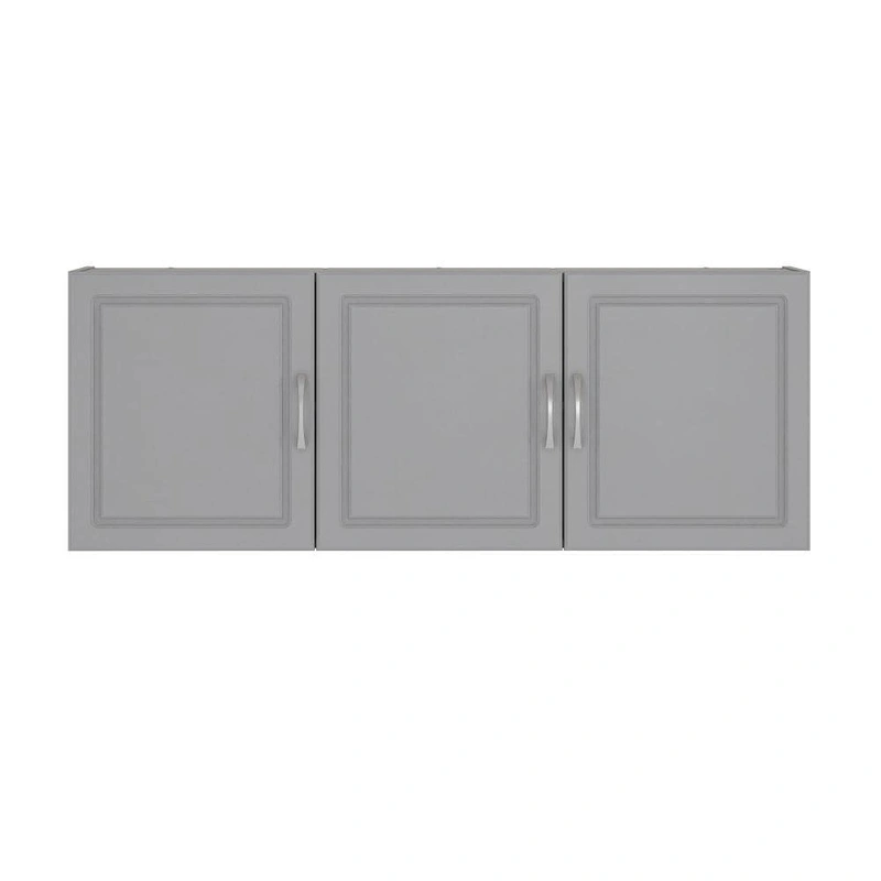 54" Wall-mounted Garage Cabinet in Gray Optimize your garage or workspace with the Ameriwood Home Kendall Wall-mounted Cabinet. Designed for durability, this cabinet offers two sturdy shelvesone adjustableperfect for organizing tools and supplies. The slee
