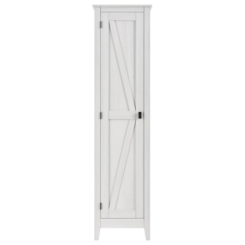 Rustic Ivory Pine Pantry The SystemBuild Winthrop 18-inch Wide Storage Cabinet is an elegant storage solution with a rustic barn-style design. Crafted from sturdy laminated particleboard and MDF with a weathered ivory pine finish, it provides ample space w