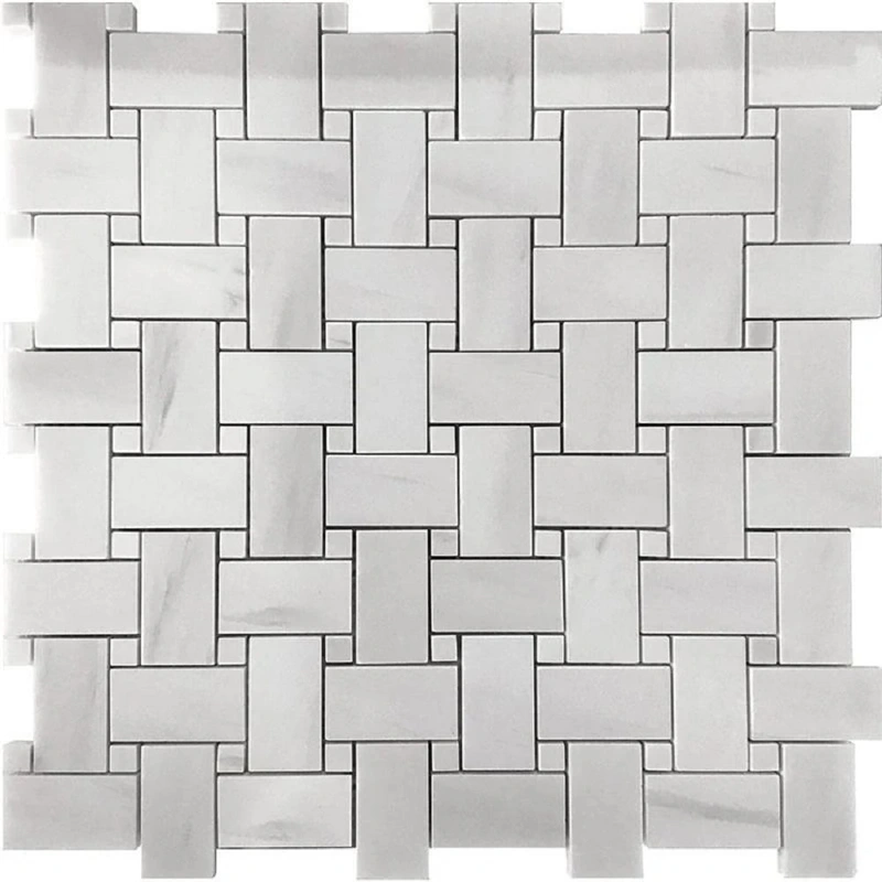 Discover the elegant Athens White Marble Basketweave Mosaic Tileperfect for creating stunning backsplashes and accent walls. The luxurious polished finish and classic basketweave pattern bring a timeless elegance to any room.
