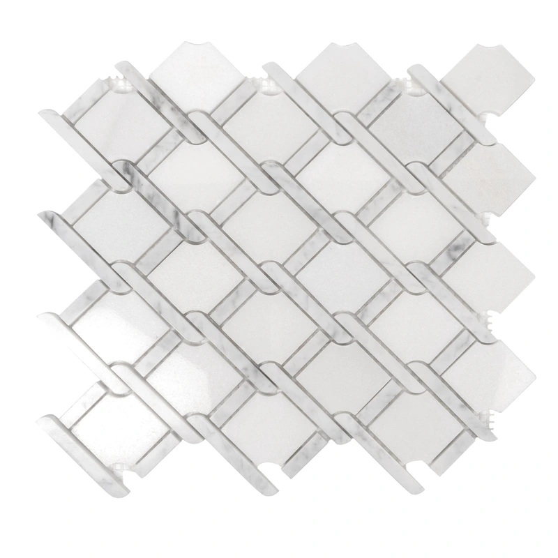 Athens White Polished Marble Basketweave Mosaic Tile Sample Capture the timeless elegance and natural charm of marble with the Athens White 4-in x 4-in Polished Marble Basketweave Mosaic Wall Tile. Perfect for creating captivating backsplashes and accent w