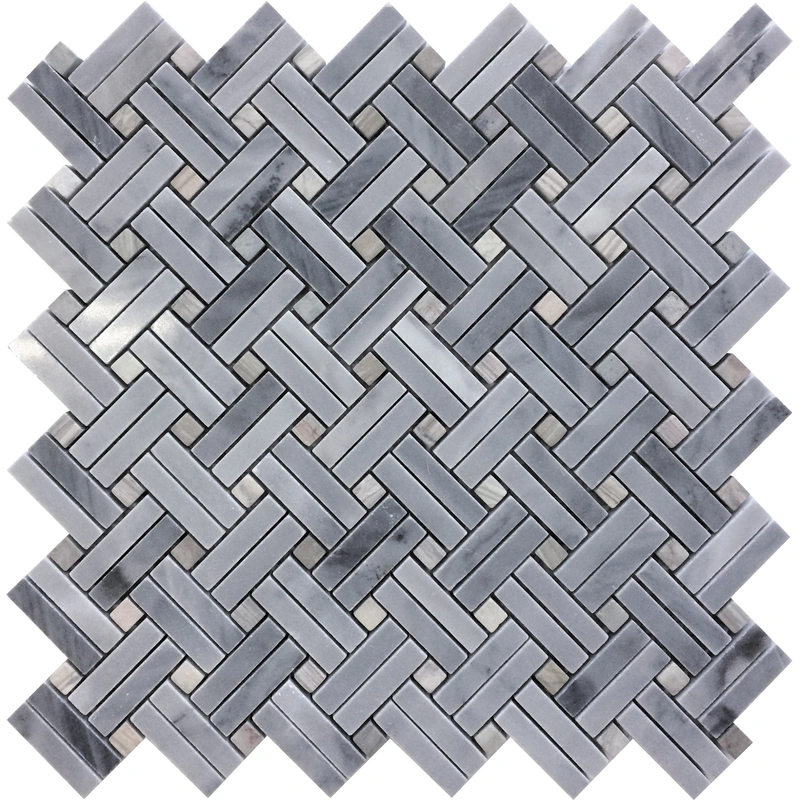 The Apollo Gray Marble Basketweave Tile transforms your space with its sophisticated mosaic that whispers luxury. Imagine your bathroom floor or kitchen backsplash enveloped in this exquisite tile that radiates a harmonious blend of gray tones. Its basketweave pattern is a showstopper, creating an intriguing visual flow while complementing both contemporary and traditional interiors. Style it alongside metallic fixtures for a chic, modern flair or warm wood accents for classic elegance. This tile is an essential canvas for those who value the union of form and function in luxurious living.