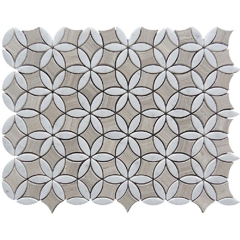 Apollo Pinwheel Marble Tile Sample Experience the elegance of natural marble with the Apollo Pinwheel Marble Tile Sample. This 4" x 4" polished tile features a sophisticated white and beige color palette and an intricate pinwheel pattern, making it an exqu