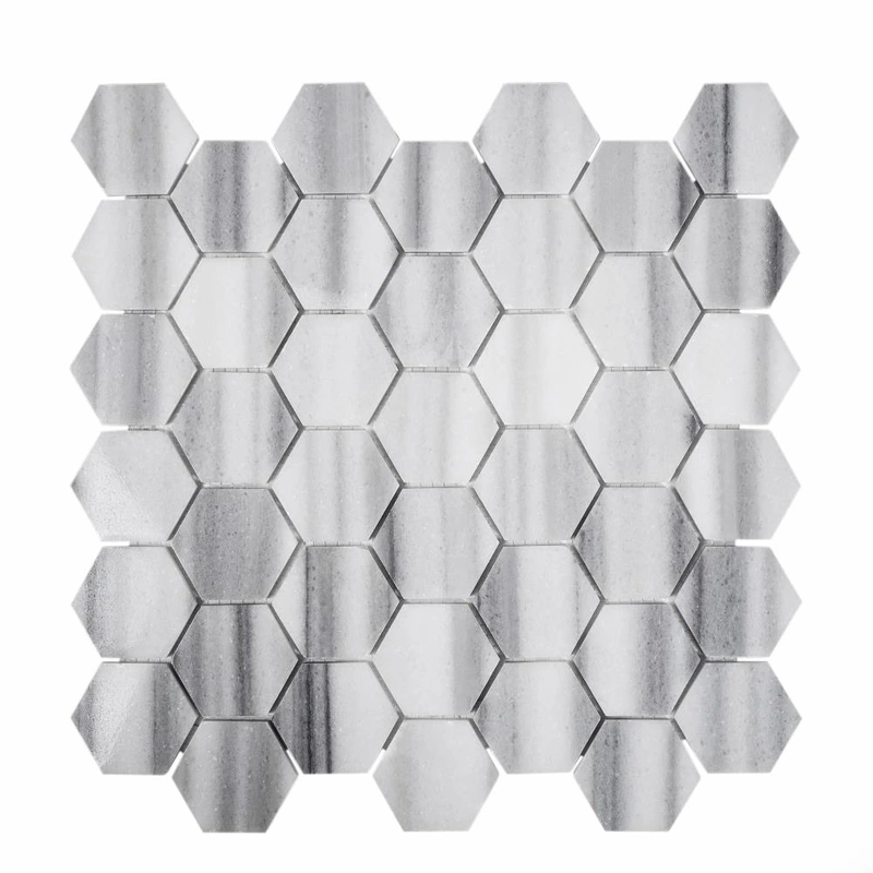 Gray Polished Ceramic Honeycomb Mosaic Tile Sample Discover the allure and sophistication of the Apollo Tile with this sample piece. Featuring a polished ceramic finish in a distinctive honeycomb mosaic pattern, this gray tile is ideal for various applicat