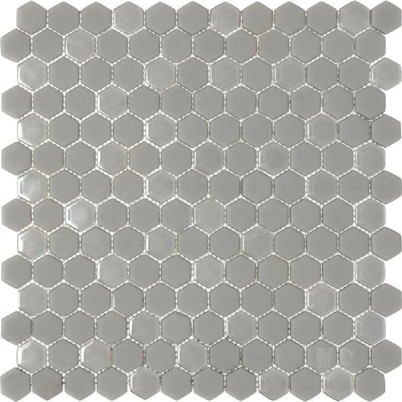 Elevate any room with the Apollo Honeycomb Glass Tile, featuring an elegant gray finish and modern hexagonal design. Perfect for experimenting with style and aesthetics, this luxurious sample offers a glimpse into the timeless elegance and practicality of glass tile applications in any area.
