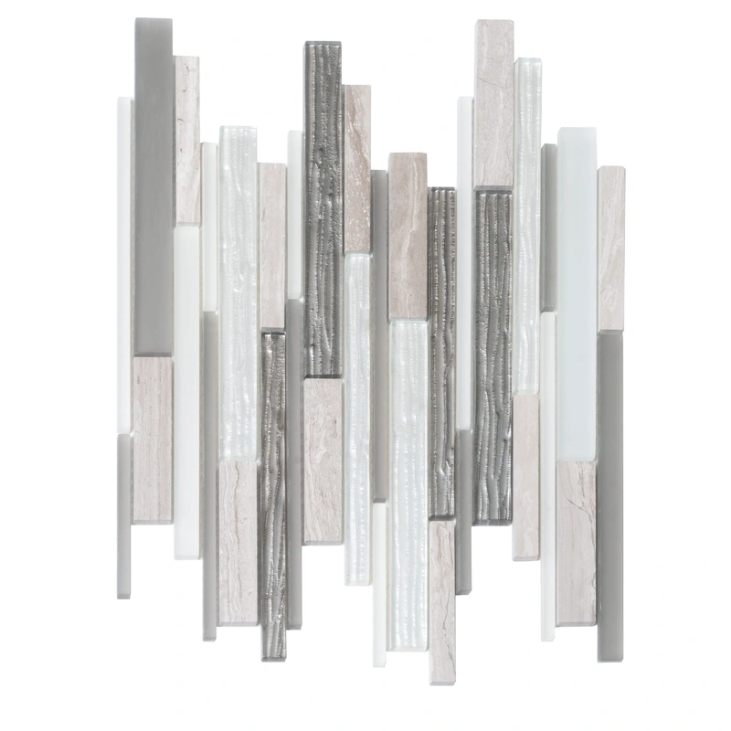 Apollo White & Gray Marble Brick Look Tile Sample Experience the elegance of our Apollo White & Gray Marble Brick Look Tile. This sample showcases a polished blend of glass, metal, and stone, perfect for refining your bathroom or kitchen spaces. It