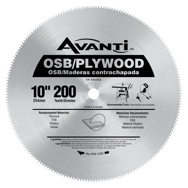 Avanti High-Performance Circular Saw Blade Achieve clean, precise cuts on plywood, OSB, and veneer with the Avanti 10 in. x 200-Tooth Circular Saw Blade. Designed for both DIY projects and professional construction work, this blade offers exceptional perfo