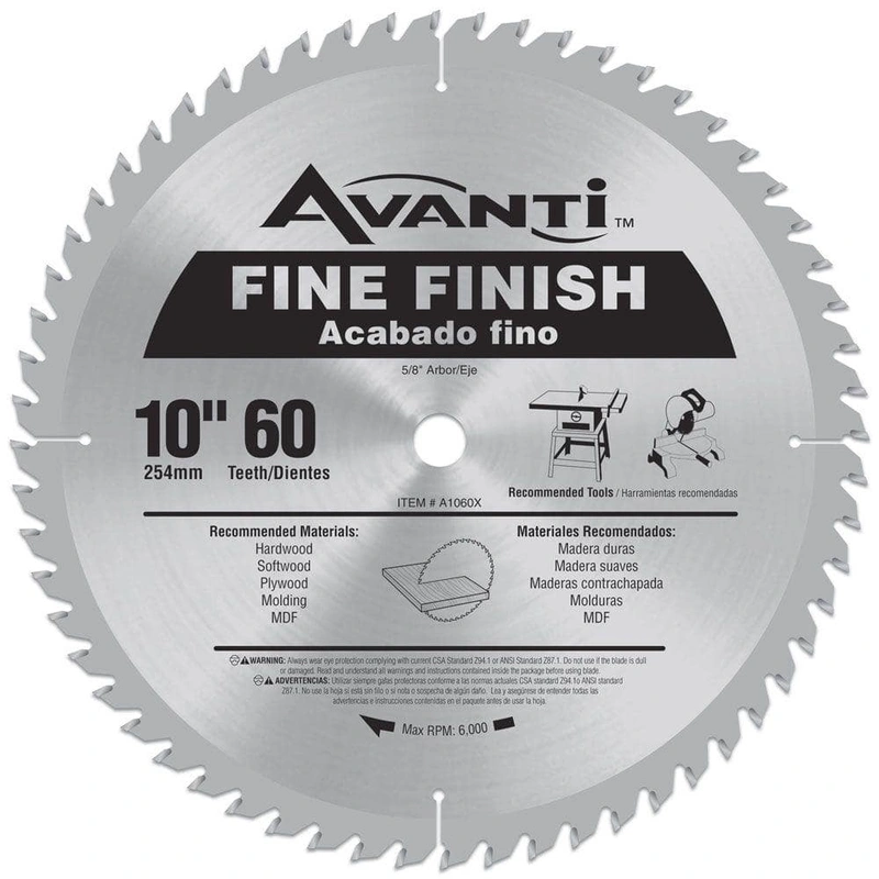 Avanti 10 in. Fine Finish Saw Blade The Avanti 10 in. x 60-Tooth Circular Saw Blade is engineered for exacting wood cuts with exceptional smoothness. With carbide-reinforced steel, this saw blade ensures precise slices through a variety of woods including