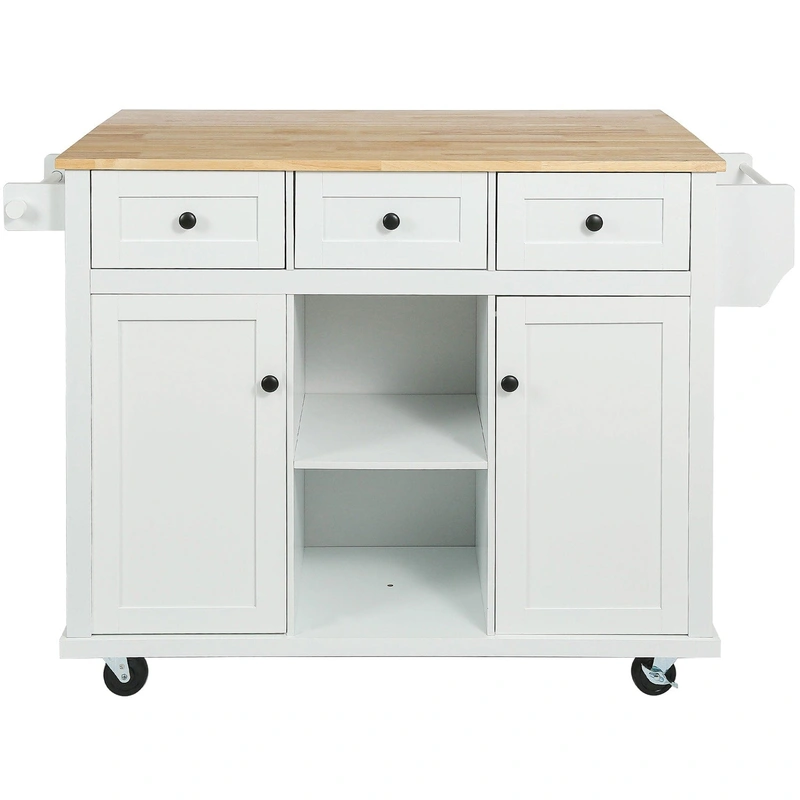 BABOOM White MDF Base Kitchen Island on Wheels Elevate your kitchen's functionality with the BABOOM White MDF Base Kitchen Island featuring a wood top and rolling casters. This versatile island offers generous storage and an expansive work surface, redefin