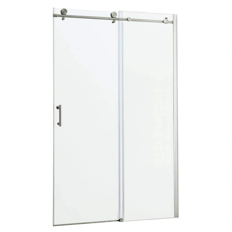 Boosicavelly 48" Sliding Shower Door - Brushed Nickel Upgrade your bathroom with the Boosicavelly 48" Sliding Shower Door, featuring a sleek brushed nickel finish and durable tempered glass. This semi-frameless design offers a modern, minimalistic look whi