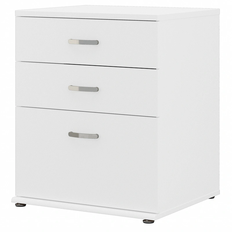Universal Utility Storage Cabinet - 28" White Optimize your space with the Bush Business Furniture Universal Utility Storage Cabinet. Featuring a sleek, modern design and durable wood composite construction, this cabinet offers ample storage with three smo