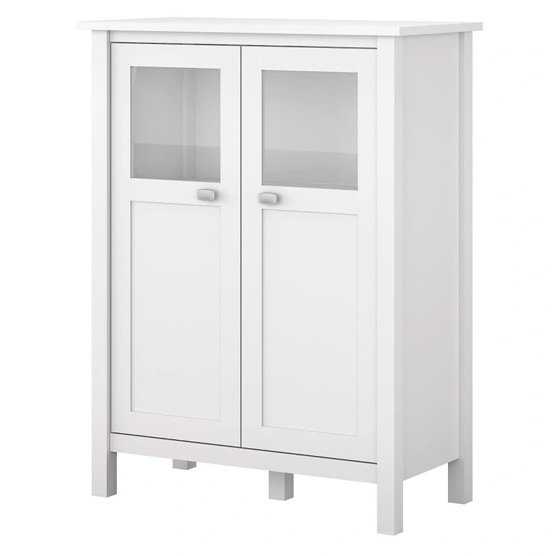 Bush Furniture Broadview White Bar Cabinet The Bush Furniture Broadview Bar Cabinet is a versatile and stylish storage solution perfect for any home. Its sleek white finish with contemporary satin chrome hardware complements any decor while providing ample