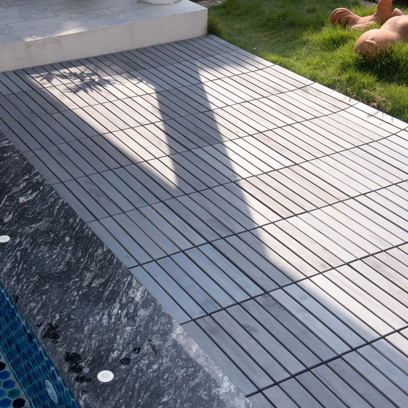 Transform your outdoor space with the Bybafun 12″ x 12″ Gray Prefinished Wood Deck Tiles. With their waterproof finish and innovative interlocking design, these Acacia hardwood tiles redefine ease of installation and durability, making them ideal for balconies, patios, and rooftops.