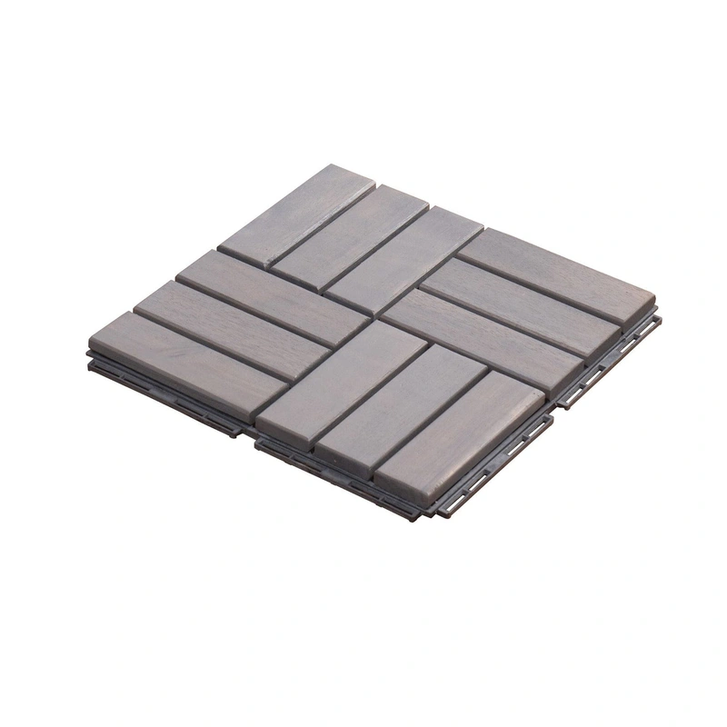 Bybafun Gray Wood Deck Tiles, 30-Pack Elevate your outdoor spaces with Bybafun 12x12 Gray Pattern2 Prefinished Wood Deck Tiles. Crafted from durable acacia wood and finished with water-resistant oils, these tiles offer a maintenance-smart solution that's p