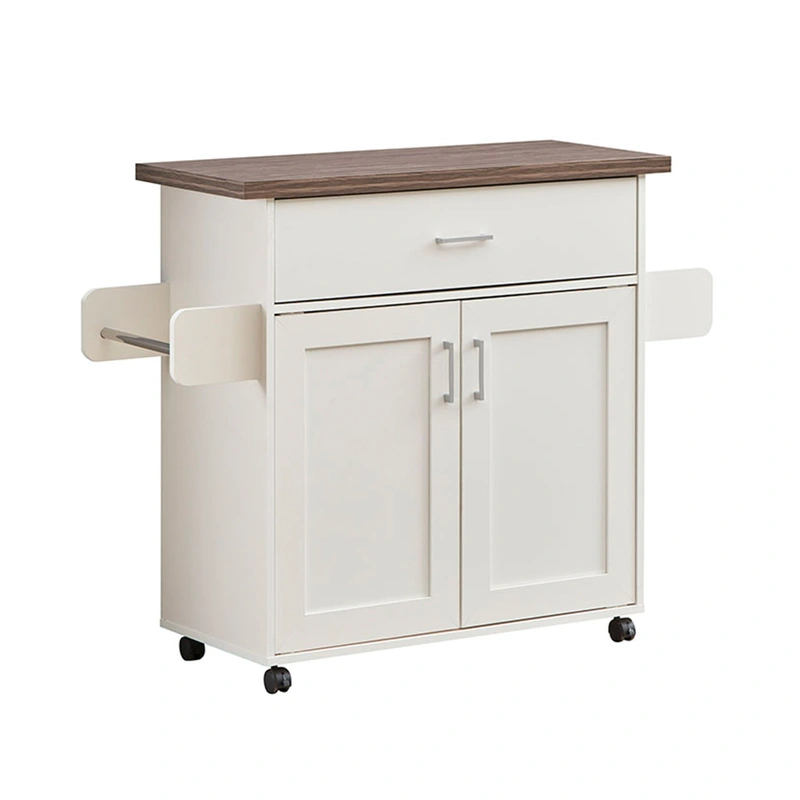 White Wood Rolling Kitchen Island with Storage Enhance your kitchen functionality and style with this White Wood Rolling Kitchen Island. Crafted with a durable wood top and a sleek white wood base, this island offers versatile storage solutions and optimum