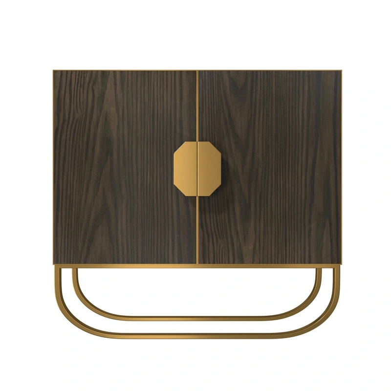 Transform any room with this exquisitely crafted storage cabinet that exudes understated elegance. Its striking blend of natural wood grain and chic gold accents lends it an air of sophistication, instantly elevating your decor scheme. Imagine this piece not only as a functional storage solution but as a showstopper in a modern living room or an effortlessly stylish dining area. A perfect embodiment of luxury living, this cabinet is as much about the aesthetics as it is about practicality.