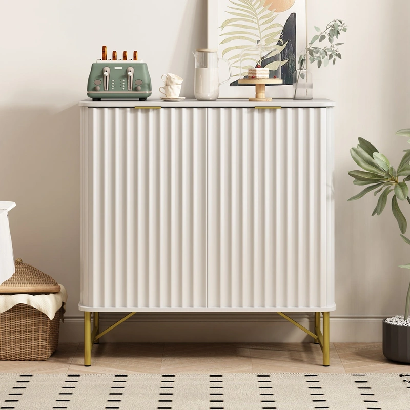The Clihome White Freestanding Utility Storage Cabinet is nothing short of a masterpiece in space transformation. Use its bold geometric design and lustrous gold accents to breathe life into a monochrome living area, turning storage into statement. Picture it alongside houseplants and art books for a touch of modern sophistication. This cabinet doesnt just store; it elevates the ordinary to extraordinary, crafting an environment where chic meets functionality in the most luxurious way.