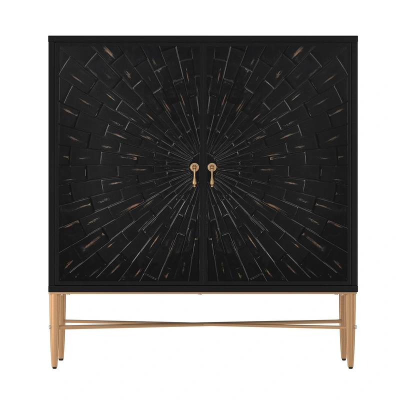 The Clihome Vintage Black Freestanding Utility Cabinet is a beacon of style transcending the ordinary storage solutions. Its captivating geometric patterns paint elegance against the backdrop of a chic industrial frame. Positioned in a living room or dining area, this cabinet offers both sophistication and practicality, instantly transforming any space. Its striking visuals paired with the charming metallic legs coalesce into a monument of luxury that’s as functional as it is aesthetically pleasing.