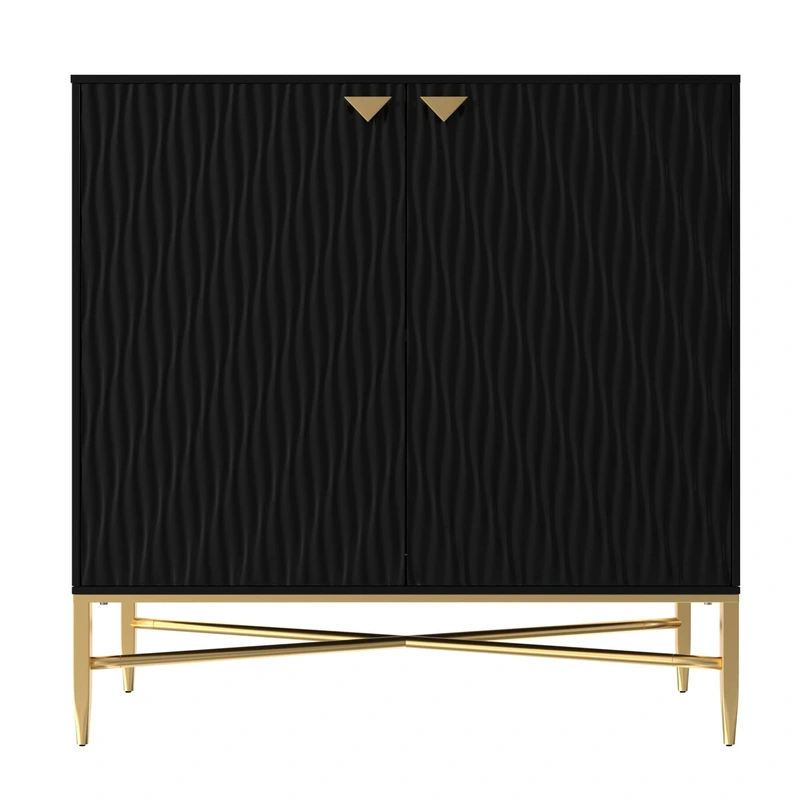 Black MDF Freestanding Utility Storage Cabinet Elevate your living space with the Clihome Black Freestanding Utility Storage Cabinet. Featuring a unique raised water ripple pattern and sleek brass powder-coated metal legs, this cabinet offers both style an