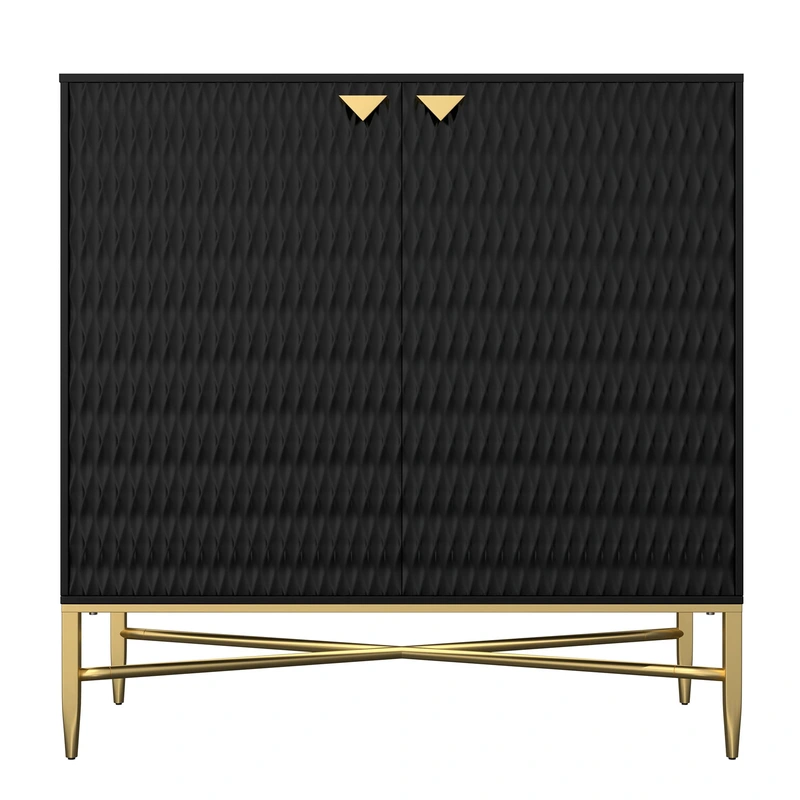 Clihome Black Diamond Pattern Storage Cabinet Maximize your home's storage and style with the Clihome Black Diamond Pattern Storage Cabinet. This freestanding MDF unit features elegant brass powder-coated legs and a modern black finish, designed to seamles