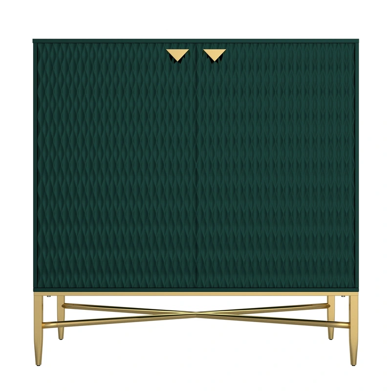 Green Freestanding Utility Storage Cabinet Enhance your living spaces with the Clihome Green Freestanding Utility Storage Cabinet. This stylish cabinet features an elegant raised diamond pattern and brass powder-coated X-tapered metal legs, perfect for mod