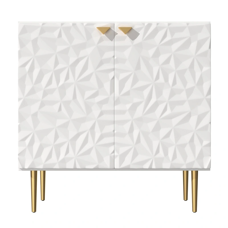This Clihome storage cabinet masterfully melds elegance with practicality, transforming any space it graces. The crisp, raised diamond pattern juxtaposed against lustrous gold legs offers an irresistible visual allure. Perfect for styling in an airy office or anchoring a refined living room, it effortlessly elevates any aesthetic. This piece ingeniously conceals clutter while showcasing a stunning design, making it indispensable for those who seek both beauty and functionality in their living environments.