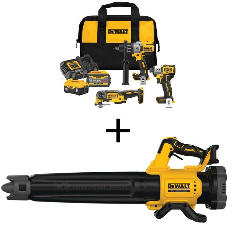 This robust combo kit from DEWALT defines modern versatility with its sleek, ergonomic design and powerhouse capability. Each tool is engineered to gracefully transform your workspace, from the finely balanced hammer drill to the commanding air thrust of the blower. Perfectly styled for seamless integration into your tool collection, these precision-crafted instruments are as aesthetically pleasing as they are functional, encapsulating the essence of convenience and strengthessentials for crafting your luxurious, efficient realm.
