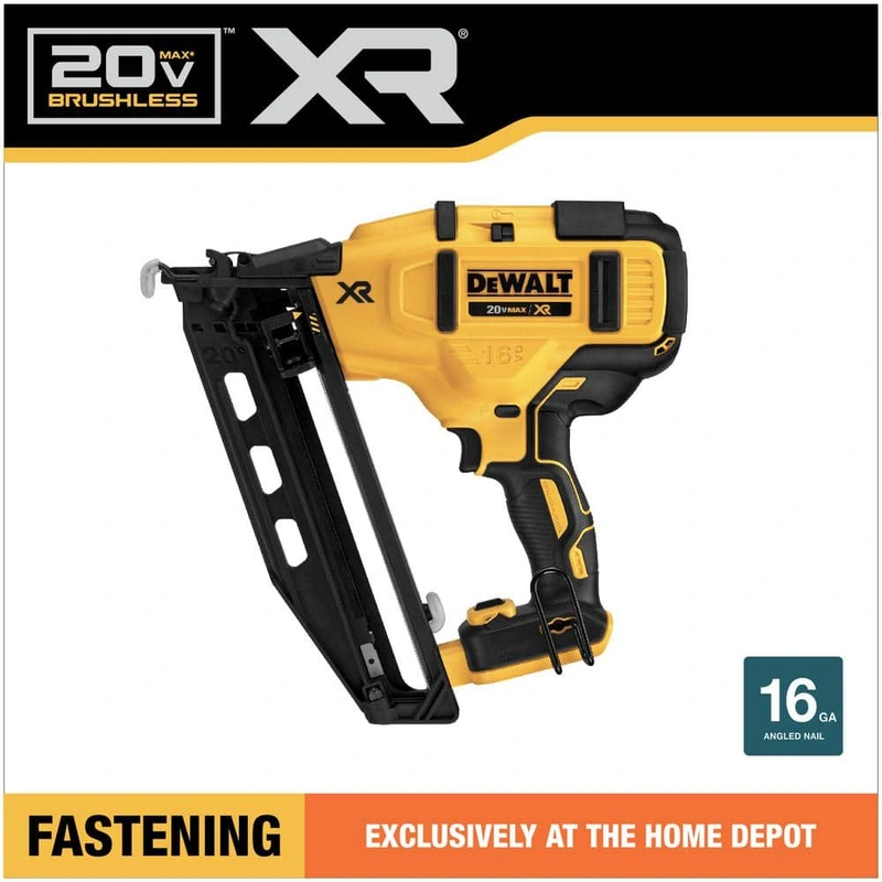 DEWALT 20V MAX XR Cordless 16-Gauge Finishing Nailer Power through your finishing projects with the DEWALT 20V MAX XR Cordless 16-Gauge Angled Finishing Nailer. This versatile tool eliminates the need for a compressor, minimizing the hassle and noise while