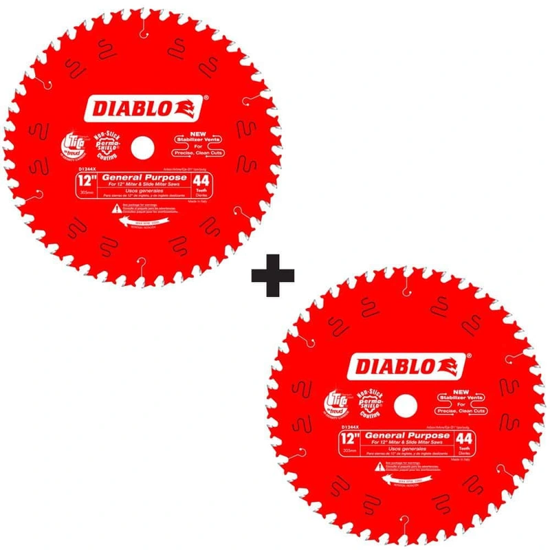 Diablo 12" 44-Tooth General Purpose Saw Blade 2-Pack The Diablo 12" General Purpose Circular Saw Blade features advanced stabilizer vents for smooth and noise-reduced cuts. Made with durable TiCo Hi-Density carbide, the blade ensures precise, long-lasting