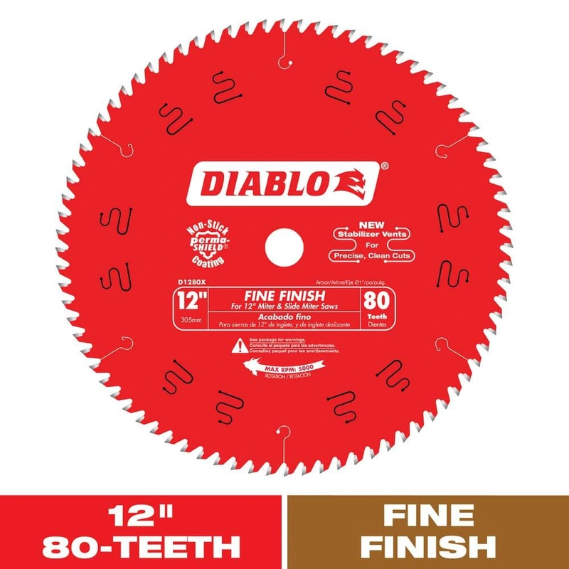 Diablo 12in 80-Tooth Fine Finish Wood Saw Blade The Diablo 12in 80-Tooth Fine Finish Saw Blade is engineered for professional contractors who demand precise, clean cuts and exceptional durability. Featuring advanced TiCo Hi-Density carbide and laser cut te