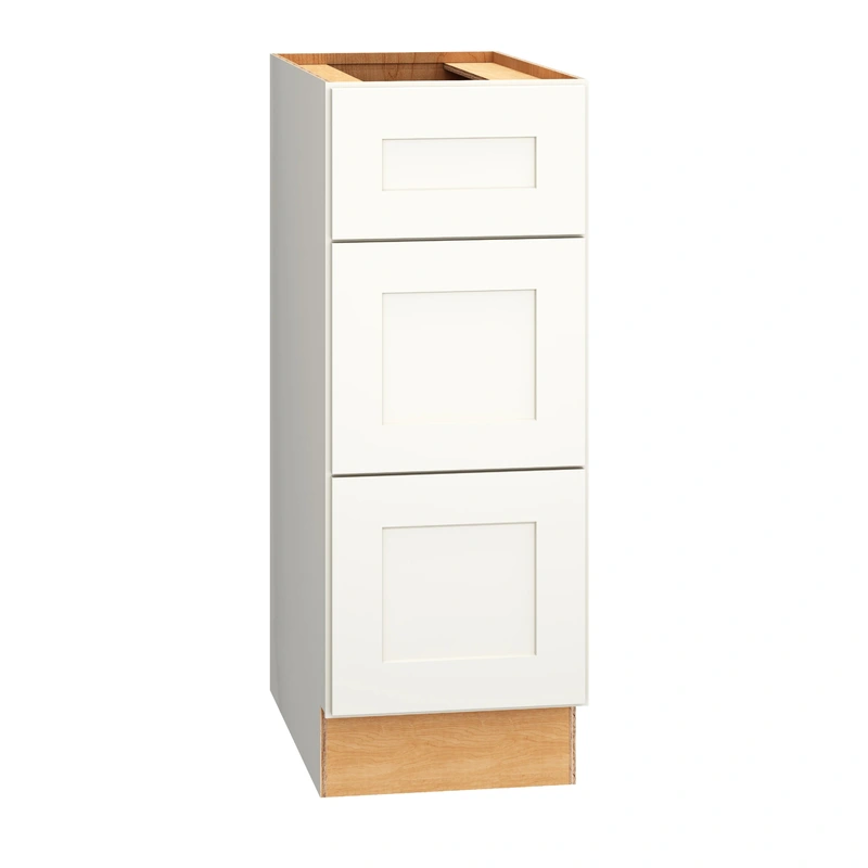The Diamond Express Jamestown White 3-Drawer Wall-Mount Cabinet is meticulously crafted with robust all-plywood construction and a sophisticated Sherwin-Williams painted finish. Designed for seamless integration into kitchens, bathrooms, or utility areas, this cabinet offers both durability and elegance with its modern shaker style and soft-close drawers.