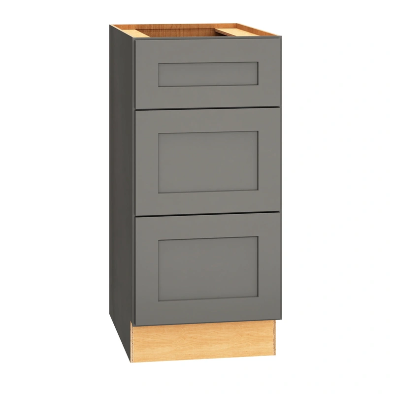 The Jamestown Moonstone Gray 3-Drawer Wall Cabinet combines timeless elegance with practical functionality. Constructed from durable wood with a sophisticated painted finish, it features soft-close drawer technology for quiet operation and offers enhanced durability through its Diamond TrueCraft solid back construction.