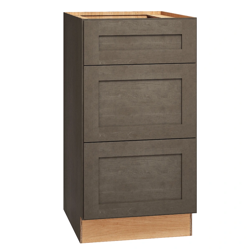 The Diamond Express Jamestown 3-Drawer Wall-Mount Cabinet in Colt Brown offers exceptional quality with its plywood construction and soft-close drawers. Its trend-forward shaker style and mid-tone brown stain with gray hues make it a perfect fit for contemporary spaces.