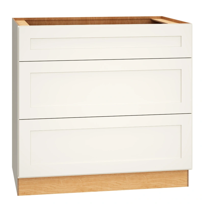 Diamond Express Jamestown White 3-Drawer Cabinet Upgrade your space with the Diamond Express Jamestown 3-Drawer Base Cabinet, crafted with all-plywood construction and a deluxe painted finish. Featuring the classic Shaker style, this fully assembled cabine