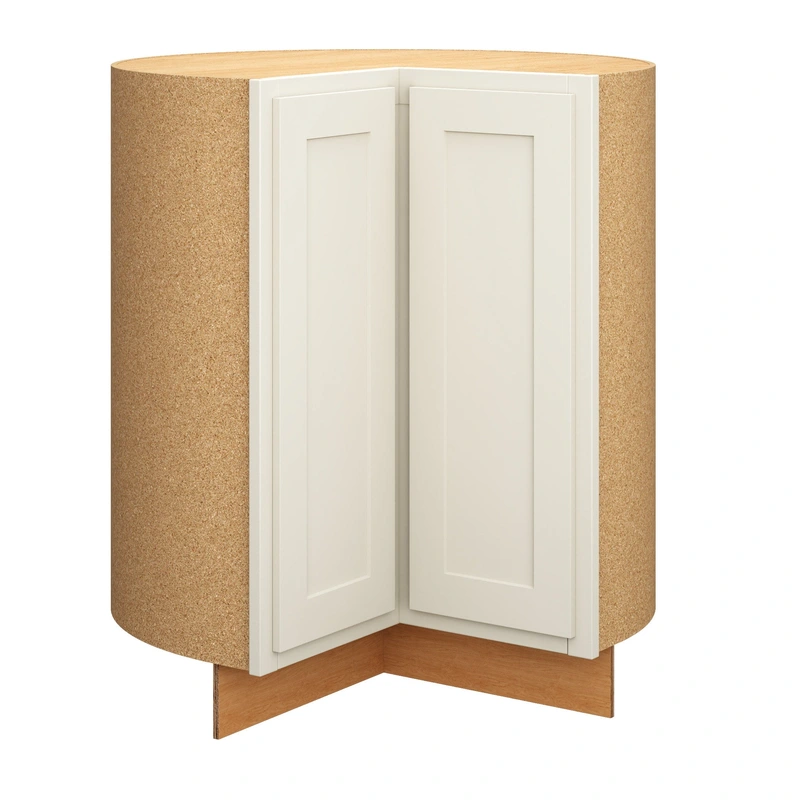 Jamestown 36" White Lazy Susan Corner Cabinet Maximize your kitchen space with the Jamestown 36" White Lazy Susan Corner Cabinet. Combining a timeless recessed panel shaker design with smart functionality, this cabinet is crafted from robust plywood and fe