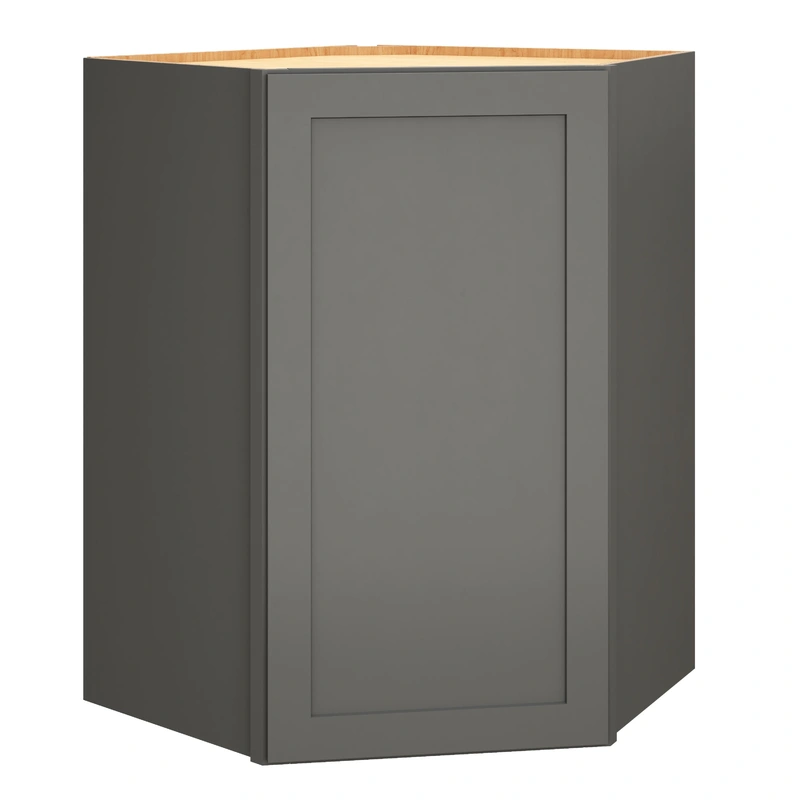 Moonstone Gray Diagonal Corner Wall Cabinet 39-in The Moonstone Gray Diagonal Corner Wall Cabinet combines elegant Shaker style with exceptional durability and functionality, making it a standout choice for any home improvement project. With all-plywood co