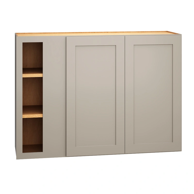 Jamestown 42" Cloud Gray Corner Cabinet Maximize your space with the Jamestown Corner Cabinet by Diamond Express, featuring a stunning cloud gray finish and a modern shaker panel style. Designed with solid plywood construction and soft-close technology, th