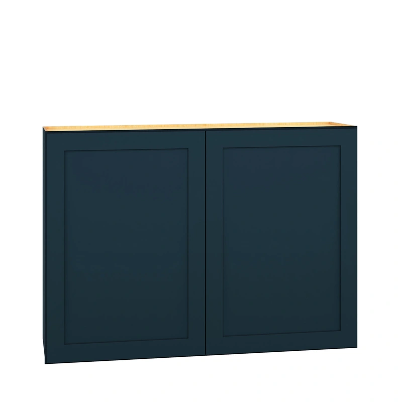 Regatta Blue Shaker-Style Wall Cabinet Transform your space with the Jamestown Wall Cabinet, featuring a classic Shaker door style in a vibrant Regatta Blue. This fully assembled, high-quality plywood cabinet offers not just elegance, but also durability,