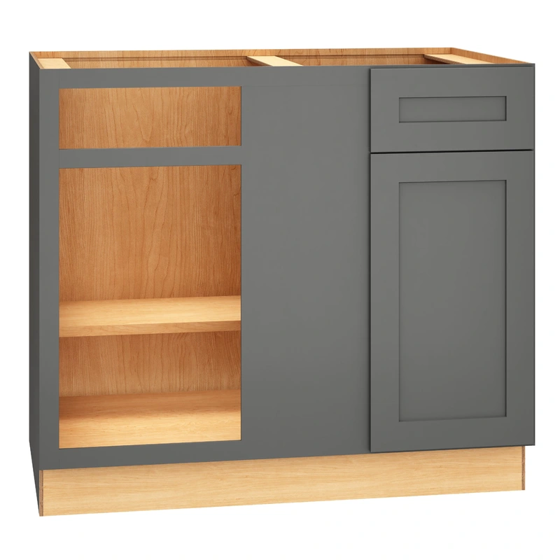 This corner cabinet isn’t just functionalit’s a piece of art. Its Moonstone Gray finish offers a sophisticated tone that perfectly complements any subtle or bold interior palette. The recessed panel style exudes a classic elegance, while the shaker door adds a touch of contemporary flair. Maximize your kitchen’s functionality by tucking this beauty into an unused corner, blending practicality with style. It’s a definite statement piece that brings both luxury and function to your living spaces.