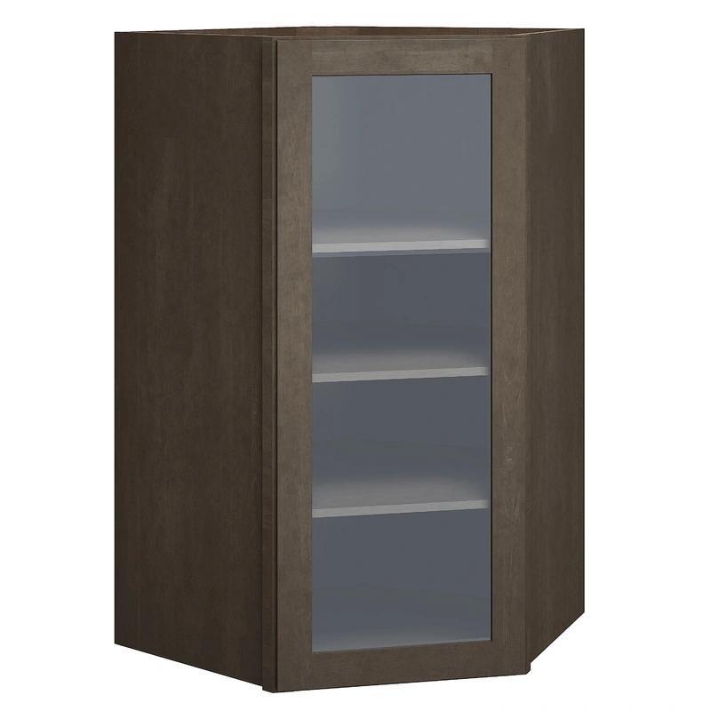 Jamestown Colt Brown Corner Wall Cabinet Transform your space with the Jamestown 42-inch diagonal corner wall cabinet, designed for modern functionality and timeless style. Featuring a mid-tone Colt Brown finish, this fully assembled Shaker-style cabinet d