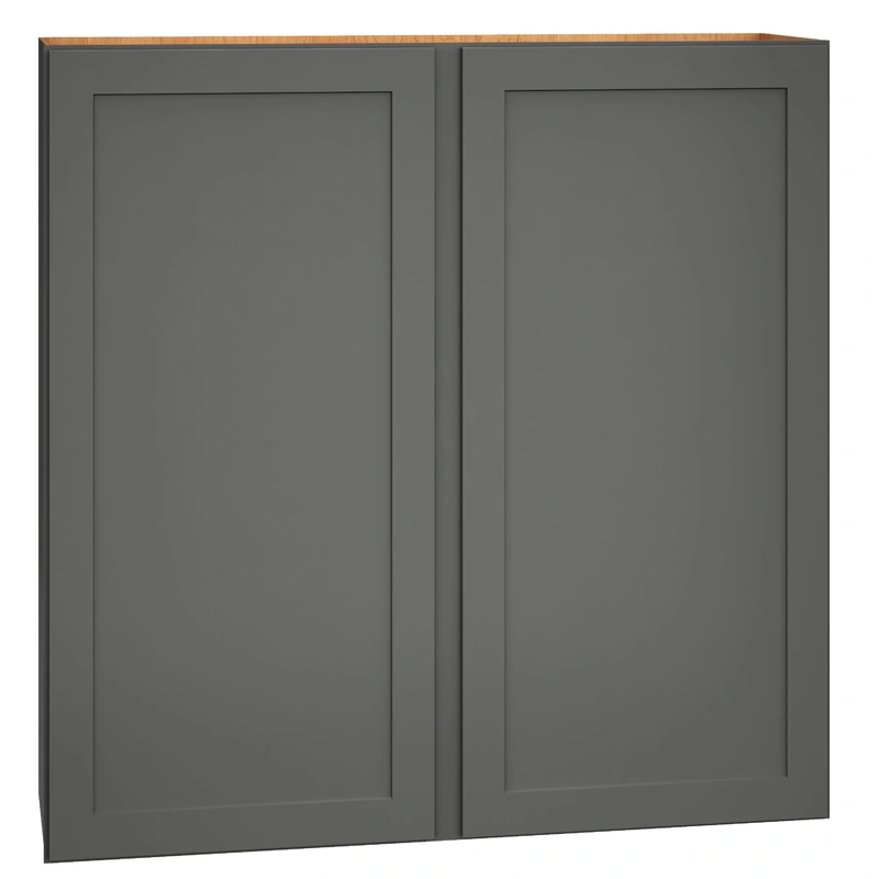 Jamestown Moonstone Gray Shaker Cabinet Elevate your space with the Diamond Express Jamestown Wall Cabinet in Moonstone Gray. This 42-inch wide cabinet combines the strength of fully assembled plywood with the elegance of a recessed panel Shaker design, pr