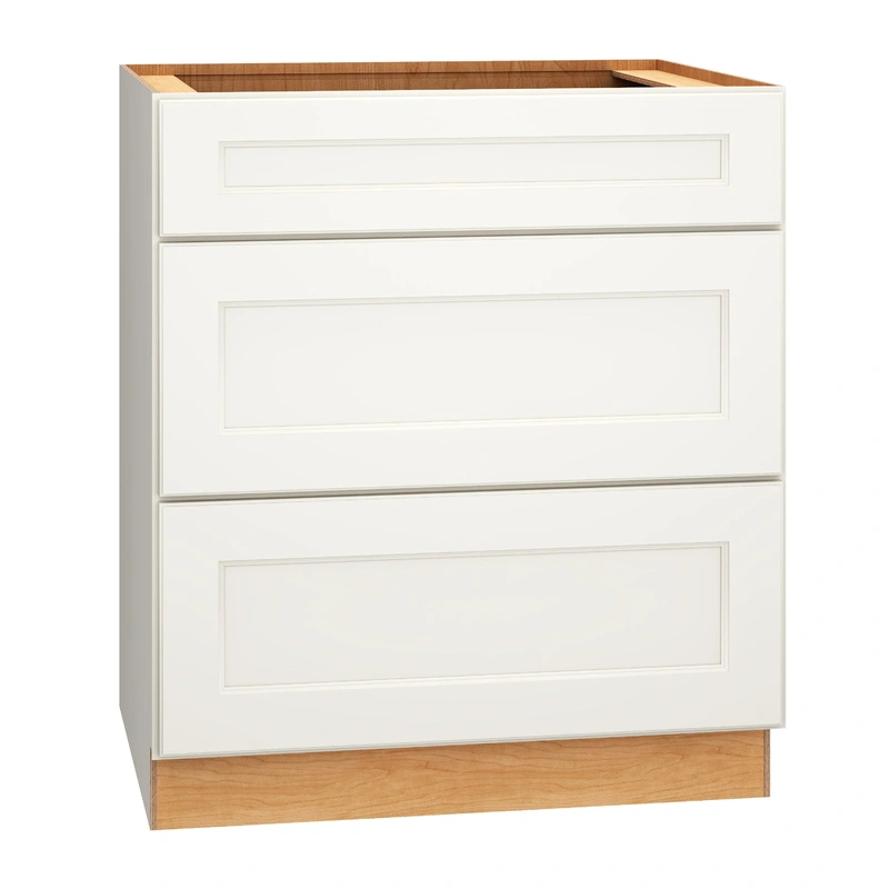 Diamond Express 30-in 3-Drawer White Cabinet The Diamond Express 30-inch 3-Drawer White Cabinet offers a fusion of style and utility that is perfect for any modern kitchen or bathroom remodel. With robust plywood construction and soft-close drawers, this s