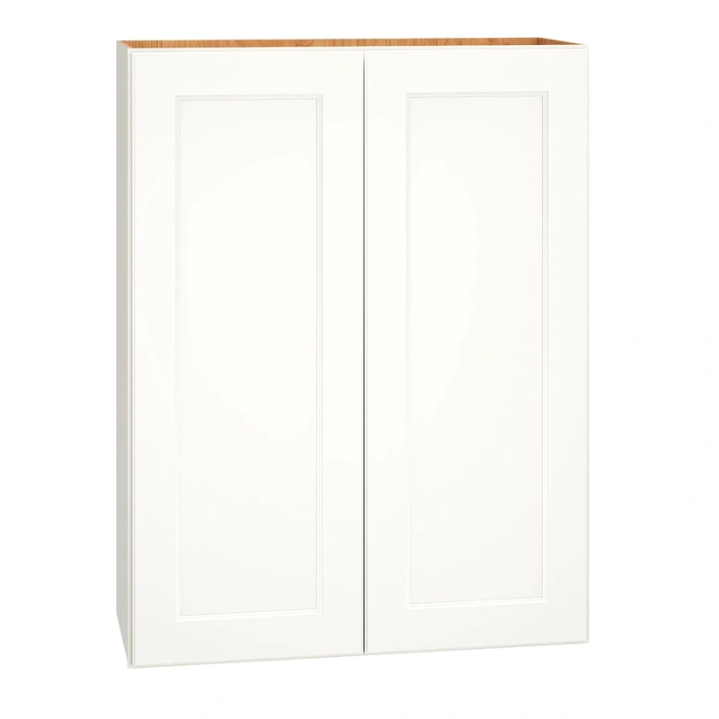 Macaulay 30" White Wall Cabinet The Macaulay 30" White Wall Cabinet elevates your home with its all-plywood construction and elegant recessed panel design. Engineered for top-tier durability, this fully assembled cabinet features soft-close doors and showc