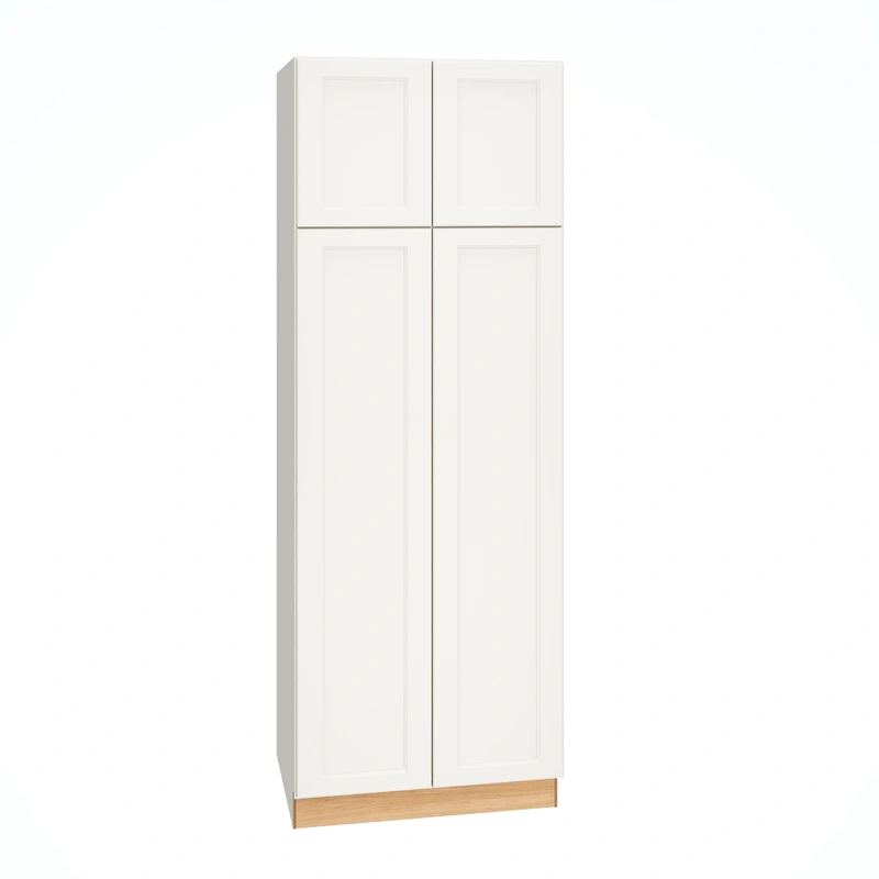 Diamond Express White Pantry Cabinet The Diamond Express Macaulay Pantry Cabinet offers exceptional quality with its fully assembled plywood construction and a sleek recessed panel square door style. Perfect for kitchens, bathrooms, or any storage needs, t