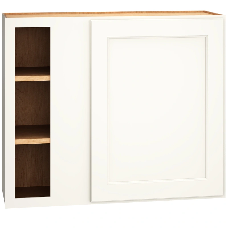 The Macaulay blind corner wall cabinet transforms any room into a symphony of modern sophistication with its crisp, Sherwin-Williams white finish. Its refined recessed panel doors offer a nod to classic design while maintaining a contemporary edge perfect for today’s transitional homes. Use this cabinet to seamlessly integrate storage solutions that highlight your space’s architectural beauty. Make it a cornerstone of your room’s decor; essential to both practicality and luxury livinga truly timeless addition.