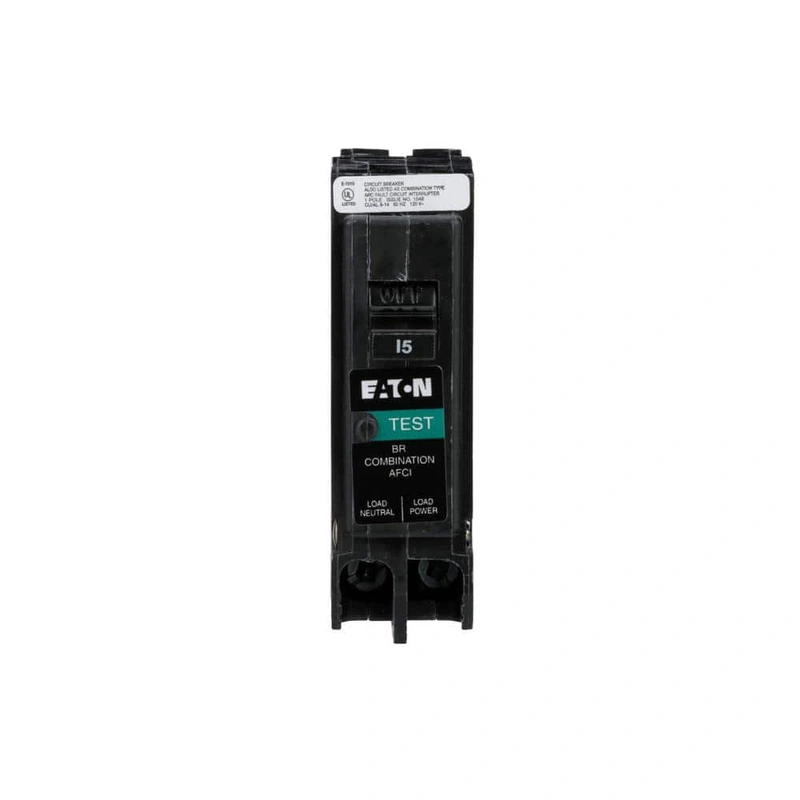 Eaton 15A 120V AFCI Circuit Breaker The Eaton 15 Amp 120-Volt Single-Pole AFCI Circuit Breaker enhances electrical safety by utilizing advanced electronic technology to prevent overheating and arcing faults. Designed for type BR load centers, its compact f