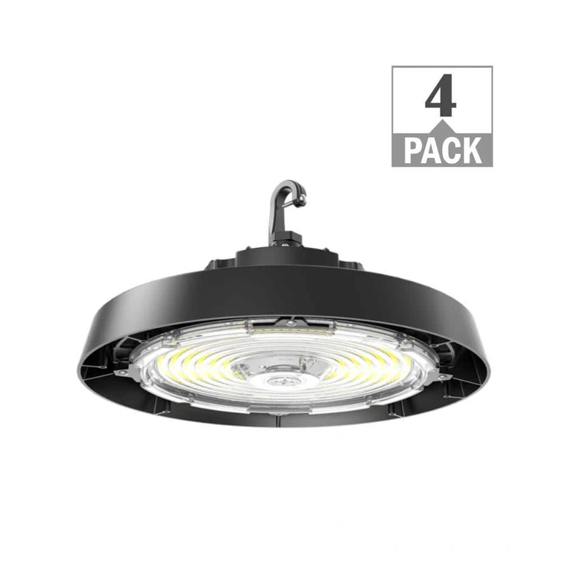 Transform your commercial or industrial environment with the ETI 400-Watt Equivalent Round LED High Bay Light, a masterpiece of functional design. Its sleek matte black aluminum allows it to blend seamlessly into modern spaces, while offering unmatched luminosity. Imagine this luminaire highlighting your industrial space’s architectural details, casting a perfect light across vast ceilings. With its customizable settings, this high bay light is not just a functional necessity, but an essential element of luxurious and sophisticated lighting design.