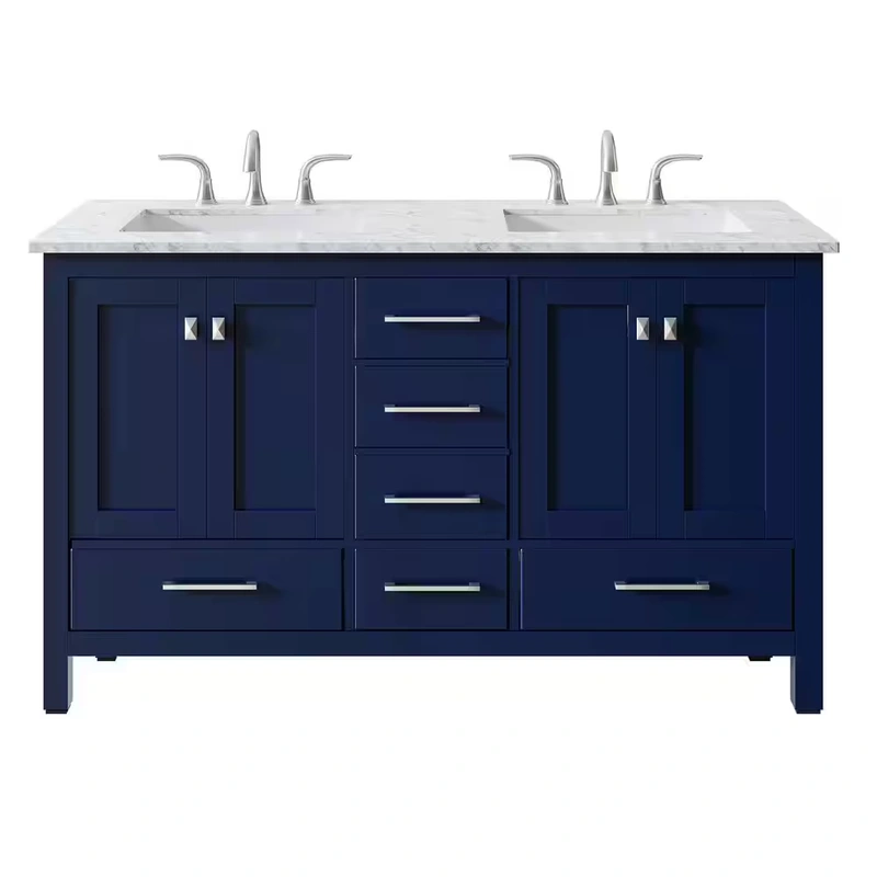 Eviva Aberdeen 60 in. W x 22 in. D x 34 in. H Double Sink Freestanding Bath Vanity in Blue with White Carrara MarbleTopIntroducing the Eviva Aberdeen Double Sink Freestanding Bath Vanity, an exquisite fusion of style and practicality. Measuring 60 inches w