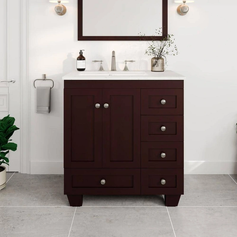 Imagine transforming your bathroom into a serene retreat with the Eviva Acclaim Vanity. The rich teak finish paired with the White Carrara Quartz countertop exudes timeless sophistication, effortlessly enhancing any decor. With its sleek design and spacious storage, it becomes a versatile anchor in your space. Style it with lush greenery or minimalistic decor for a chic, modern look. Embrace luxury living every day with this impeccable blend of style and functionality.