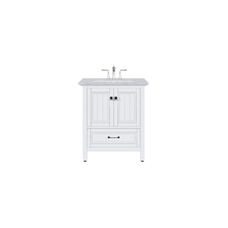 Eviva Britney 30" White Bathroom Vanity Elevate your bathroom's elegance with the Eviva Britney 30" Single Freestanding Bathroom Vanity. This timeless piece combines solid wood craftsmanship with a sophisticated White Carrara marble countertop and a premiu
