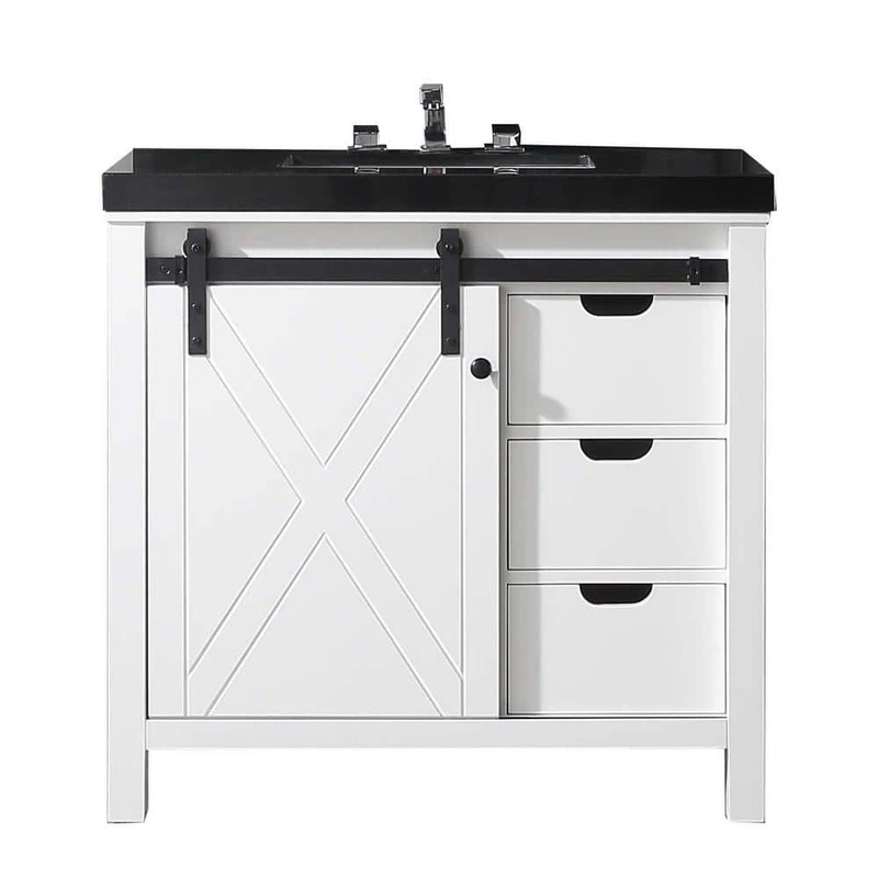 Eviva Dallas 36 in. W x 22 in. D x 34 in. H Bath Vanity in White with Black Granite Top with Black SinkIntroducing the Eviva Dallas Bath Vanity, an exquisite fusion of modern sophistication and rustic charm. This 36-inch vanity boasts a classic white finis